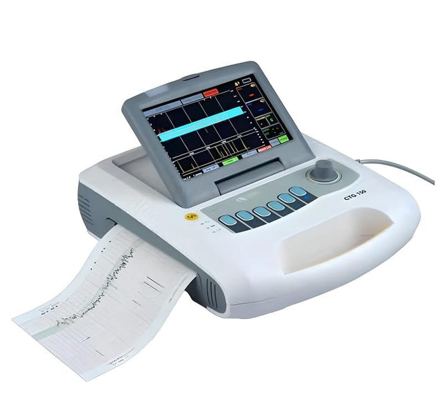 The CTG 150 Portable Foetal Monitor by Maestros Electronics is a highly reliable, portable system designed for precise monitoring of fetal heart rate and uterine activity. Its 7" Colour TFT Display provides clear, real-time data visualization, while the in-built 6" high-resolution thermal printer ensures immediate and easy-to-read printouts.