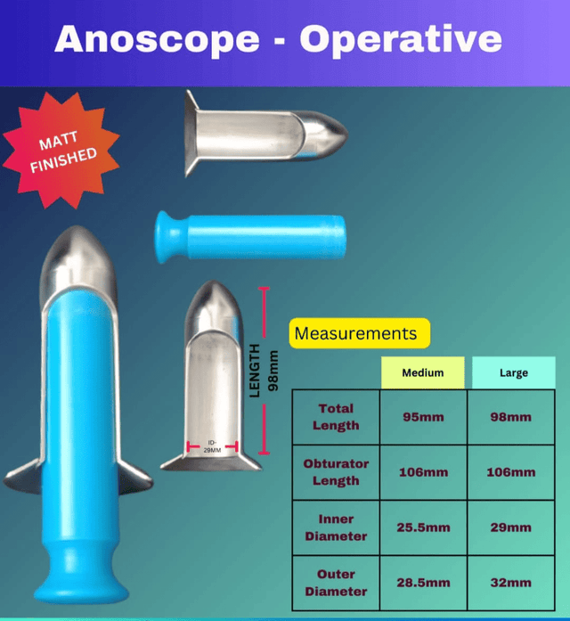 The Operative Anoscope is a precision-crafted instrument used in proctology for both diagnostic examination and minor surgical procedures of the anal canal and lower rectum. Made from high-quality stainless steel with a matt finish, this anoscope ensures durability, ease of use, and patient comfort.