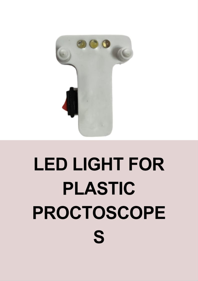 The LED Light for Plastic Proctoscope is a compact, detachable light source designed to enhance visibility during rectal and anal examinations. Specifically made to fit standard plastic proctoscopes, this high-intensity LED module provides bright, shadow-free illumination, improving diagnostic accuracy and comfort for both the practitioner and patient.