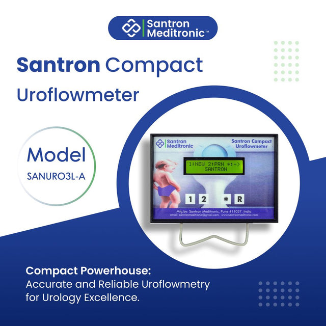 The Santron Compact Uroflowmeter is an advanced diagnostic device designed for accurate, non-invasive measurement of urinary flow parameters. Engineered for clinics, hospitals, and urology centers, this device offers precise data acquisition, an intuitive LCD interface, and seamless integration with dot matrix printers for instant reporting.