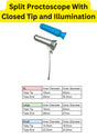 The Split Proctoscope with Closed Tip and Illumination is a high-precision instrument designed for anal and rectal examinations as well as minor surgical procedures. The split tube design allows for controlled expansion of the anal canal, while the closed, rounded tip ensures atraumatic insertion. An integrated LED light source provides focused illumination, offering clear visibility of internal structures.